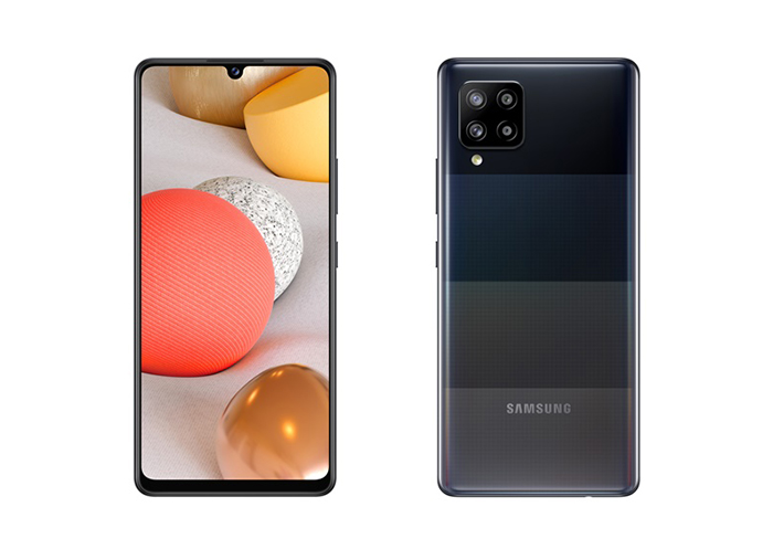 ภาพเรนเดอร์ทางการของ Samsung Galaxy A42 5G ที่เผยออกมามีให้เลือก 3 สีคือ สีดำ สีเทา และสีขาว โดยฝาหลังมีดีไซน์แบบควอดโทนที่เป็นเอกลักษณ์ไม่เหมือนใคร พร้อมติดตั้งกล้อง 4 ตัวเรียงอยู่ในโมดูลสี่เหลี่ยมมุมซ้ายด้านบน และมีไฟแฟลช LED อยู่ถัดลงมา ส่วนด้านหน้ามาในจอแบบ Infinity-U