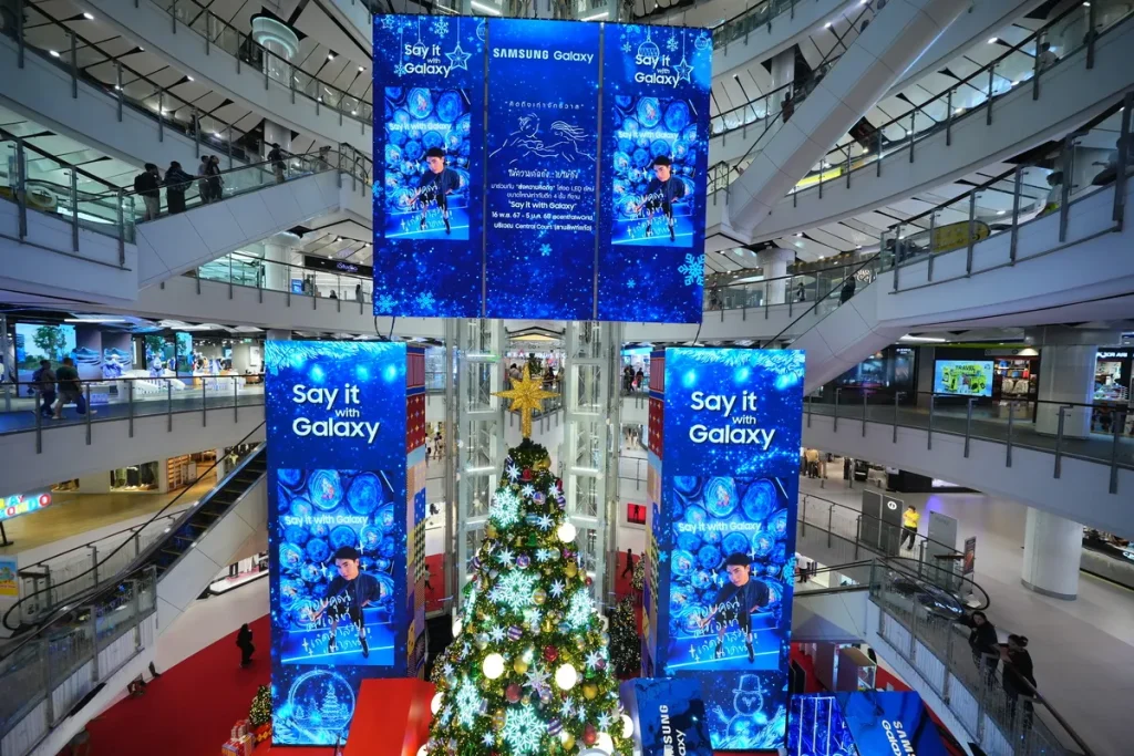 ซัมซุง ผู้นำด้านเทคโนโลยีและนวัตกรรมระดับโลก สร้างปรากฏการณ์ครั้งสำคัญส่งท้ายปีด้วยแคมเปญ “Say it with Galaxy” ที่เปลี่ยนพื้นที่ Central Court (ลานลิฟต์แก้ว) เซ็นทรัลเวิลด์ให้กลายเป็น จักรวาลแห่งความคิดถึง ชวนทุกคนส่งต่อความรู้สึกดี ๆ ผ่านจอยักษ์สูงเทียบเท่าตึก 4 ชั้น