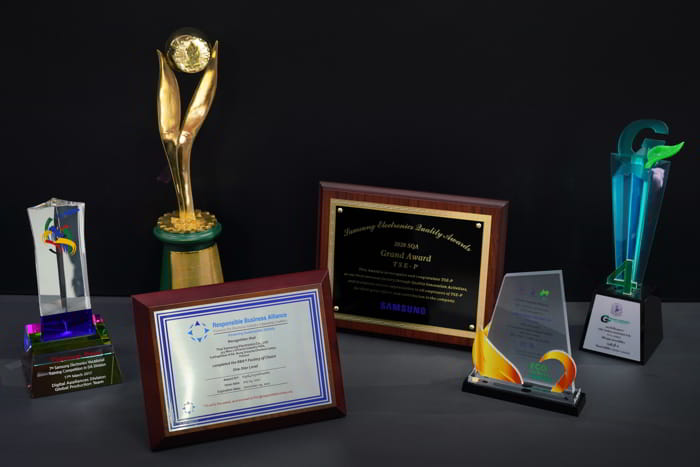 นอกจากนี้ ในปี 2562 ซัมซุงยังได้รับรางวัลอุตสาหกรรมยอดเยี่ยม (The Prime Minister’s Best Industry Award) ซึ่งเป็นรางวัลเกียรติคุณที่มอบแก่ผู้ประกอบธุรกิจอุตสาหกรรมที่มีความคิดริเริ่มและความวิริยะอุตสาหะ ในการสร้างสรรค์นวัตกรรมที่เป็นประโยชน์ต่อการพัฒนาอุตสาหกรรมในประเทศ พร้อมกันนี้ ในปี 2561 ซัมซุงยังผ่านเกณฑ์รับรองอุตสาหกรรมสีเขียว ระดับที่ 4 ตอกย้ำความสำเร็จในการดำเนินงานตามนโยบายด้านสิ่งแวดล้อมและความเป็นเลิศในภาคอุตสาหกรรมอย่างยั่งยืน
