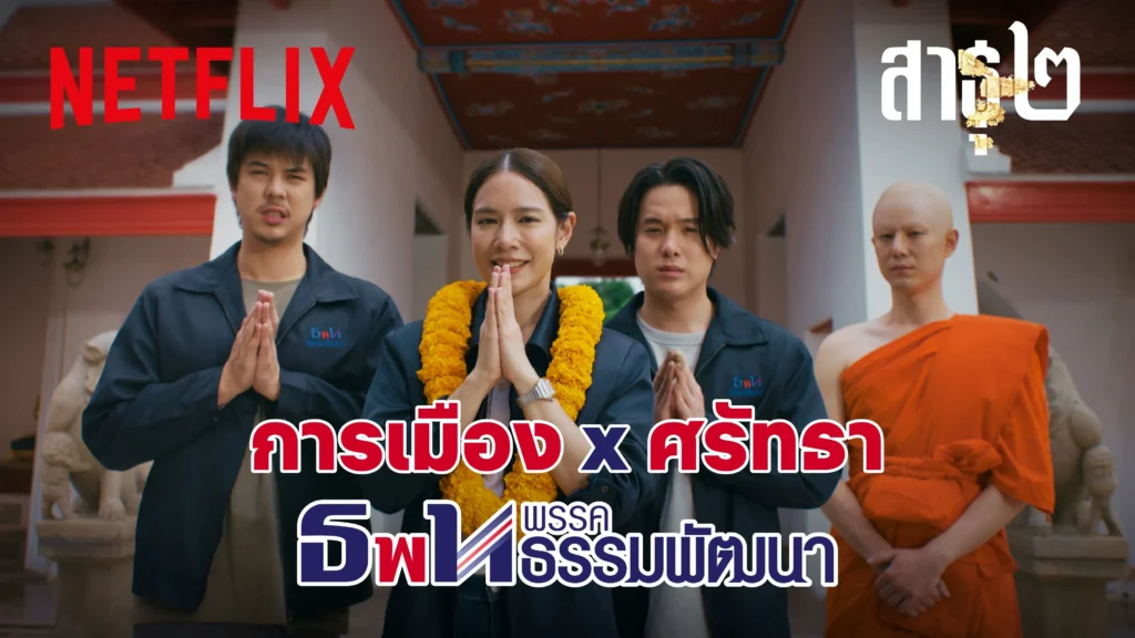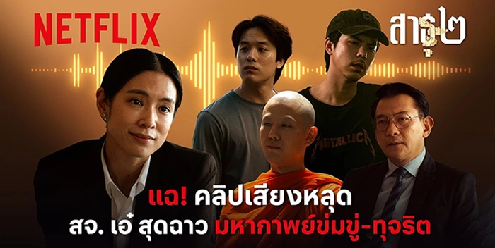 แคมเปญ “พุทธ Politics” จาก Netflix เริ่มต้นด้วยการปล่อยคลิปเสียงสนทนาลับ เปิดโปงบทสนทนาสุดฉาวของ “สจ. เอ๋ ชไมพร” (รับบทโดย โดนัท มนัสนันท์ พันเลิศวงศ์สกุล) ที่แง้มให้เห็นถึงภารกิจสุดอันตรายใน สาธุ ๒ กับโปรเจคฟอกบุญครั้งใหญ่