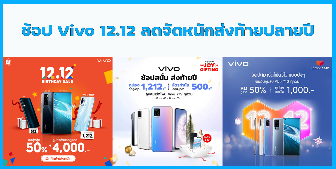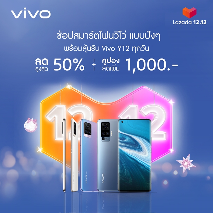 สำหรับบน Lazada 12.12 นี้ Vivo ปล่อยดีลร้อนๆ ลดหนักส่งท้ายปี กับคูปองส่วนลด 1,000 บาท ทันที เมื่อช้อปครบ 8,000 บาท พร้อมรับส่วนลด เพิ่มเป็น Lotus Gift Card อีก 500 บาท ไปเลยทุกออเดอร์ที่ช้อปครบ 7,999 บาท ในช่วงเที่ยงคืน – ตีสอง ของวันที่ 12 ธันวาคม เรียกได้ว่า ช็อปดีแจกคุ้ม แถมถ้าคุณมั่นใจในความไวของตัวเองหละก็ เตรียมตัวให้พร้อม กับทุกต้นชั่วโมง แค่ช้อปครบ 5,999 บาท ก็รับไปเลย Vivo Y12 64GB รุ่นเล็กแต่แบตอึด! (เริ่มตั้งแต่เที่ยงคืน จนหมดวัน ยกเว้นช่วงตี 3 -6 โมงเช้า จำกัดแค่ ชั่วโมงละ 1 เครื่องเท่านั้น)