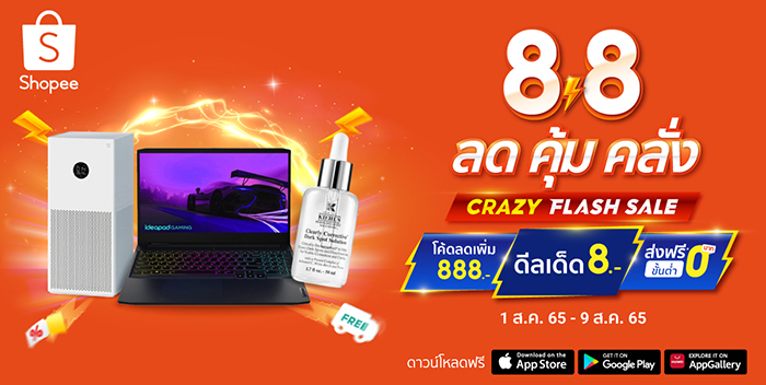ช้อปปี้ ผู้นำแพลตฟอร์มอีคอมเมิร์ซในภูมิภาคเอเชียตะวันออกเฉียงใต้และไต้หวัน ตอกย้ำความเป็นแอปตัวจริงอันดับ1 ของนักช้อป ขานรับพฤติกรรมของนักช้อปชาวไทยในปัจจุบัน ที่ให้ความสำคัญกับการช้อปปิ้งสินค้าราคาสุดคุ้มค่า เซฟเงินในกระเป๋า ช้อปสะดวก จ่ายสบาย จึงส่งแคมเปญ ประจำเดือนสุดเครซี่อย่าง “Shopee 8.8 Crazy Flash Sale” ที่มาพร้อมโปรโมชั่นและส่วนลดสุดคุ้มแบบช็อคโลก ตอบโจทย์ทุกความต้องการ ทุกไลฟ์สไตล์