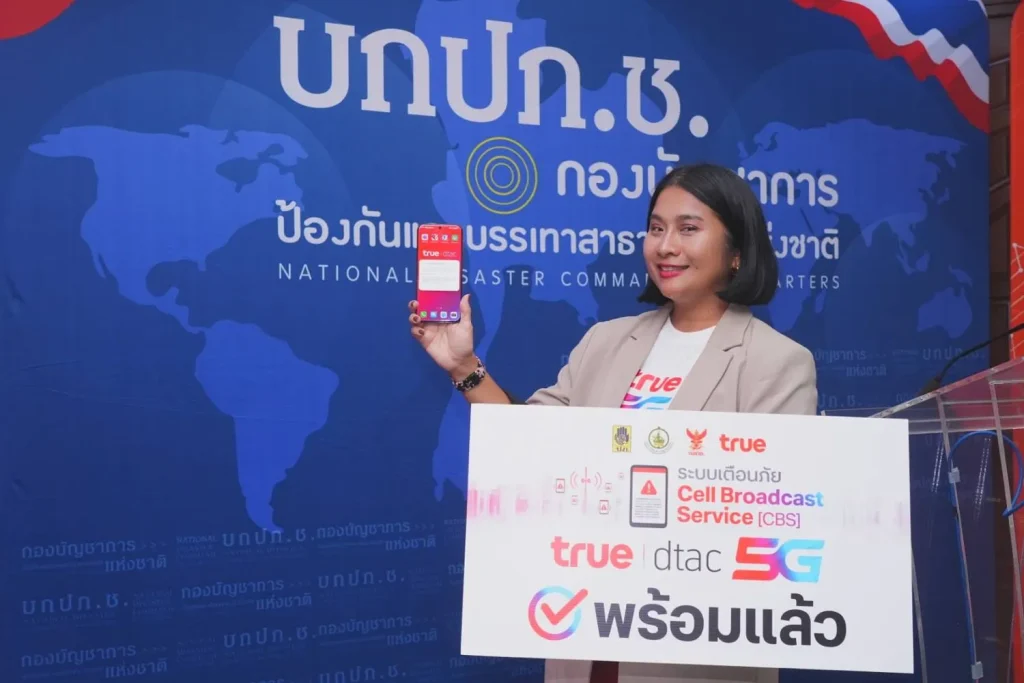 โดยทรู ให้ความสำคัญอย่างจริงจังที่จะร่วมขับเคลื่อนสังคมให้ปลอดภัยยิ่งขึ้น เป็นเอกชนรายแรกที่ติดตั้งฟังก์ชั่น Cell Broadcast Service (CBS) ครบทุกเสาสัญญาณ 4G, 5G ทั่วประเทศ พร้อมรองรับการส่งข้อความแจ้งเตือนผ่านเครือข่าย 4G/5G รองรับ 5 ภาษา เพื่อให้สามารถแจ้งเตือนภัยได้อย่างแม่นยำ ทั้งในระดับจุดเล็ก เช่น บริเวณสถานีฐาน ไปจนถึงระดับจังหวัด ระดับภูมิภาค หรือทั่วประเทศ