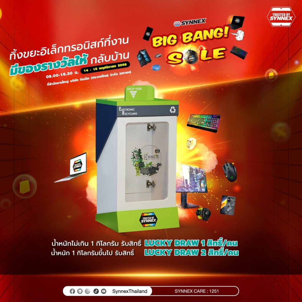 นอกจากนี้ SYNNEX ยังชวนผู้เข้าร่วมงานมาร่วมเป็นส่วนหนึ่งของการรักษ์โลกกับโครงการ “ทิ้ง…ให้ถูกที่ กับ Trusted By Synnex E-Waste” เพียงนำขยะอิเล็กทรอนิกส์ เช่น โทรศัพท์มือถือเก่า สายชาร์จ แบตเตอรี่สำรอง หรือเครื่องใช้ไฟฟ้าเก่ามาทิ้งภายในงาน รับสิทธิ์ Lucky Draw ทันที