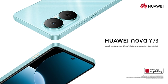HUAWEI nova Y73 วางจำหน่ายแล้ว! สมาร์ทโฟนแบตใหญ่ ใช้งานได้นาน จัดเต็มทุกฟีเจอร์ในราคาเพียง 5,990 บาท