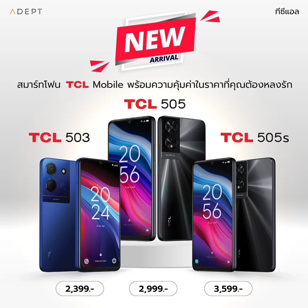 บริษัท เอเดพท์ จำกัด ผู้นำเข้าและจัดจำหน่ายสมาร์ทโฟนและอุปกรณ์สมาร์ทดีไวซ์ในประเทศไทย เปิดตัวสมาร์ทโฟนจาก TCL Mobile รุ่นใหม่ล่าสุด TCL 503, TCL 505 และ TCL 505s ที่มาพร้อมกับประสิทธิภาพที่เกินราคา ดีไซน์พรีเมียม ชูเทคโนโลยี TCL NXTVISION ที่พัฒนาอย่างต่อเนื่องเพื่อความสบายตาของผู้ใช้งาน พร้อมตอบโจทย์ทุกการใช้งานด้วยฟีเจอร์และสเปกที่ครบครันในแต่ละรุ่น