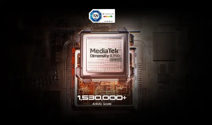 ขับเคลื่อนด้วย หน่วยประมวลผล MediaTek Dimensity 8350 Ultimate AI เพื่อมอบประสิทธิภาพการเล่นเกมระดับสูงสุด และการใช้งานแบบ Multitasking ได้อย่างลื่นไหล มีประสิทธิภาพ