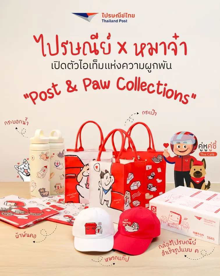 บริษัท ไปรษณีย์ไทย จำกัด จับมือหมาจ๋าคอลแลบส์คอลเลคชันส์สุดพิเศษ “Post & Paw Collections” สะท้อนภาพความสัมพันธ์แสนอบอุ่นระหว่างพี่ไปรฯ กับเหล่าสัตว์เลี้ยงประจำบ้าน เปิดจำหน่ายสินค้าพร้อมโปรโมชันสุดเอ็กซ์คลูซีฟเฉพาะภายในงาน “คู่หู คู่ซี้ เดอะคาเฟ่” ที่เนรมิตไปรษณีย์กลาง บางรัก ให้กลายเป็นคาเฟ่สุดน่ารัก