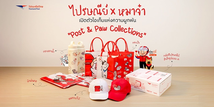 “จากแนวคิดการส่งต่อความรู้สึกดีๆ สู่ทุกชีวิต ไปรษณีย์ไทยจึงผุดไอเดียสะท้อนความสัมพันธ์แสนอบอุ่นระหว่างพี่ไปรฯ กับผองเพื่อนสี่ขา ผ่านความร่วมมือกับ ‘หมาจ๋า’ (Dogplease) ผู้สร้างสรรค์คาแรกเตอร์สุนัขที่ใครเห็นก็หลงรัก สู่สินค้าคอลเลกชันใหม่ล่าสุด ‘Post & Paw Collections ที่ออกแบบขึ้นจากความผูกพันความไว้ใจ และมิตรภาพระหว่างคนกับสัตว์เลี้ยงในทุกช่วงเวลา