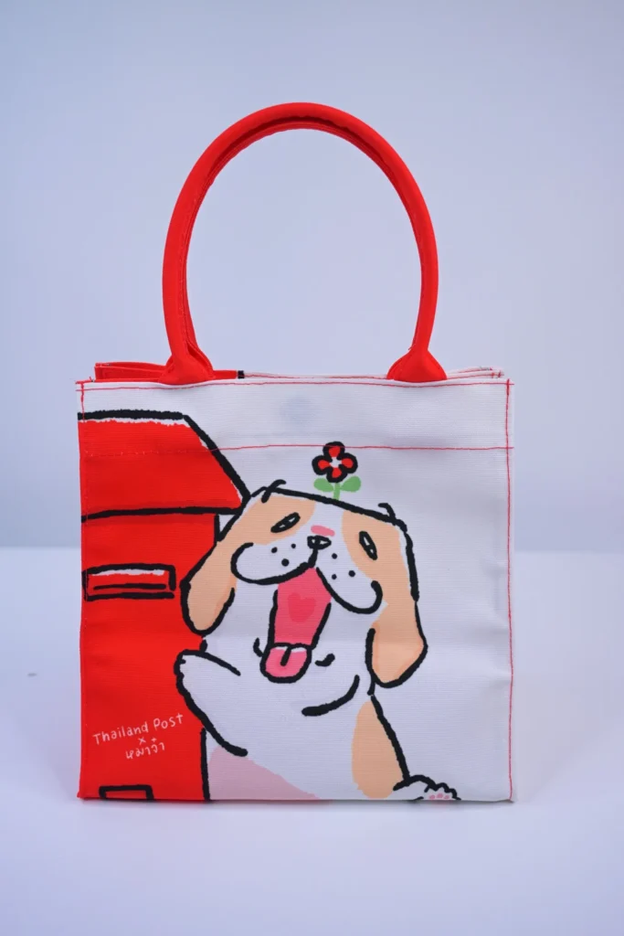 · กระเป๋าผ้า ขนาดกำลังดี ที่แต่งแต้มไปด้วยลวดลายความน่ารักของแก๊งมะหมาสุดขี้เล่น สำหรับพกพาไปได้ทุกที่ในวันชิลล์ ๆ