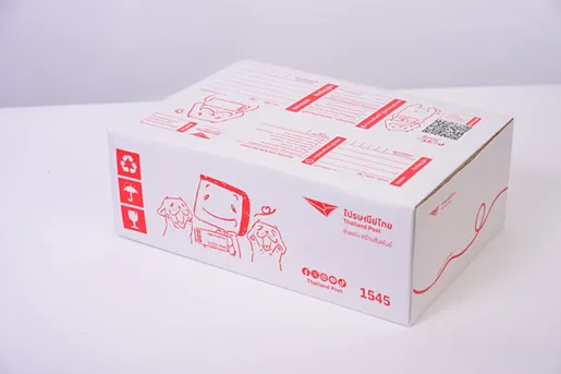 · กล่องไปรษณีย์สำเร็จรูปแบบ ค กล่องสำหรับส่งพัสดุด้วยดีไซน์ลายเส้นการ์ตูนหมาจ๋าสุดน่ารักที่ผู้รับได้เห็นก็ต้องยิ้ม ถ่ายทอดเรื่องราวมิตรภาพแสนอบอุ่นระหว่างพี่ไปรฯ กับเพื่อนซี้สี่ขา เติมเต็มความสุขให้ทุกการส่งของ