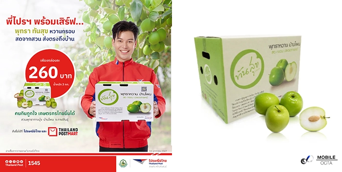 บริษัท ไปรษณีย์ไทย จำกัด ชวนสั่งพุทราบ้านโพน หรือที่รู้จักกันในชื่อ พุทรานมสดจากกลุ่มเกษตรกรรายย่อยบ้านโพน อ.คำม่วง กาฬสินธุ์ คัดสรรเฉพาะเกรดพรีเมียม ในแบรนด์ “ทันสุข” ส่งตรงสดจากสวนถึงมือคุณ สั่งง่ายที่ไปรษณีย์ไทยทุกสาขา และทางออนไลน์ผ่านเว็บไซต์หรือแอปพลิเคชัน ThailandPostMart