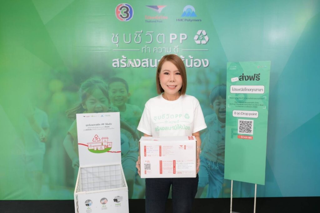 บริษัท ไปรษณีย์ไทย จำกัด ร่วมกับ บริษัท บีอีซี เวิลด์ จำกัด (มหาชน) (BEC) สถานีโทรทัศน์ไทยทีวีสีช่อง 3 และ บริษัท เอ็ชเอ็มซี โปลีเมอส์ จำกัด (HMC Polymers) เดินหน้าโครงการ “ชุบชีวิต PP ทำความดีสร้างสนามให้น้อง” ตอกย้ำเป้าหมายการขับเคลื่อนมิติชุมชน สังคม และสิ่งแวดล้อมอย่างยั่งยืน