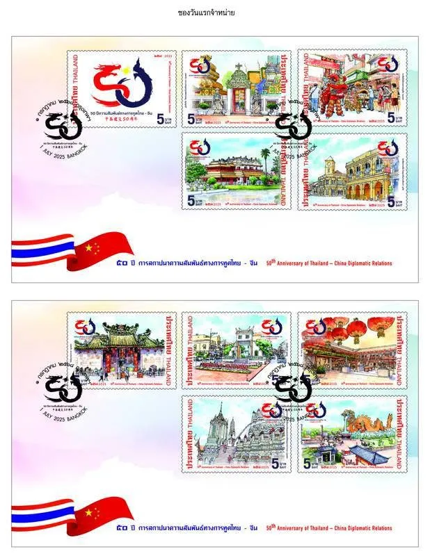 บริษัท ไปรษณีย์ไทย จำกัด เปิดตัวแสตมป์ที่ระลึกชุด “50 ปี การสถาปนาความสัมพันธ์ทางการทูตไทย – จีน” เพื่อเฉลิมฉลองความสัมพันธ์อันแน่นแฟ้นระหว่างสองประเทศที่ดำเนินมายาวนานกว่าครึ่งศตวรรษ