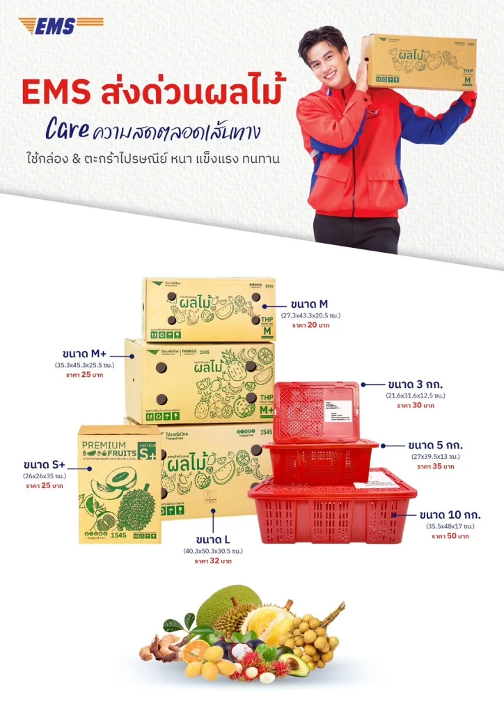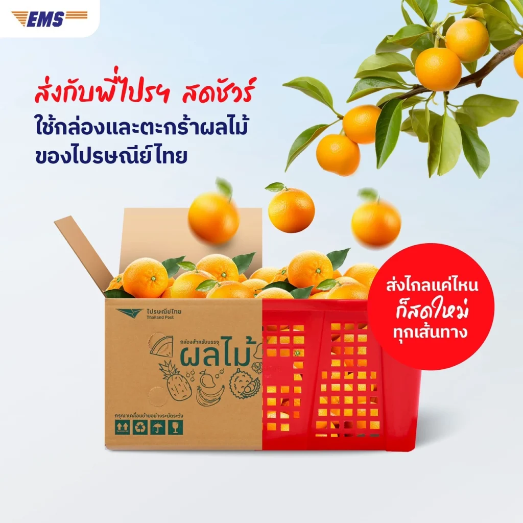 บริษัท ไปรษณีย์ไทย จำกัด พร้อมสนับสนุนเกษตรกรและคนไทยทั่วทุกภูมิภาค ส่งต่อผลไม้คุณภาพดี สดจากสวนด้วยบริการ EMS ส่งด่วนผลไม้ ถึงมือผู้บริโภคทั่วไทยอย่างรวดเร็ว และปลอดภัย