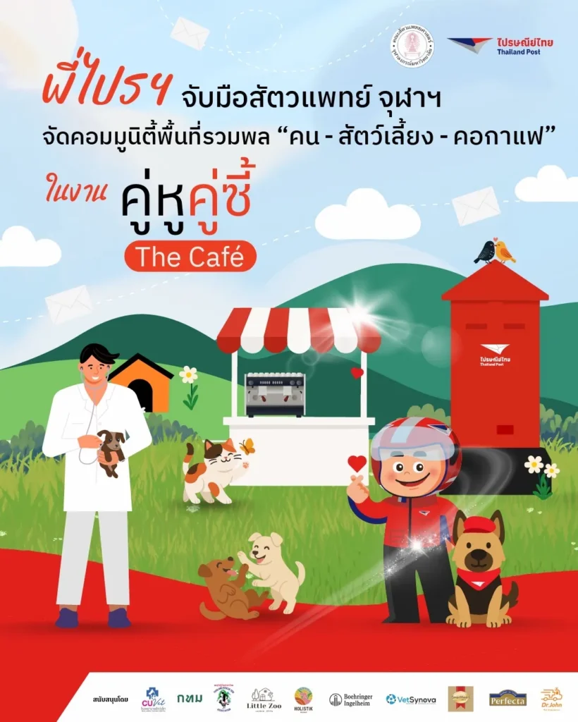 บริษัท ไปรษณีย์ไทย จำกัด เดินหน้าสร้างภาพลักษณ์สู่ Lifestyle Brandที่เชื่อมโยงทุกมิติของชีวิตคนไทย ผ่านการผสานพันธมิตรจากหลากหลายวงการ ล่าสุดจับมือกับ โรงพยาบาลสัตว์เล็ก คณะสัตวแพทยศาสตร์ จุฬาลงกรณ์มหาวิทยาลัย (CUVET) ร่วมเนรมิต “ไปรษณีย์กลาง บางรัก” ให้กลายเป็นพื้นที่แห่งความสุขและความผูกพันของคนรักสัตว์และคอกาแฟ