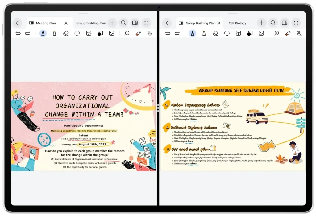 พร้อมเทคโนโลยีสลักผิวจอภาพแบบนาโนยังมอบผิวสัมผัสราวกระดาษเมื่อเขียนลงบนแท็บเล็ต ช่วยให้การจดเล็กเชอร์ สเก็ตช์ไอเดีย หรือทำมายด์แมปเป็นไปอย่างเป็นธรรมชาติเสมือนเขียนบนสมุดหรือกระดาษจริง โดยมีฟังก์ชัน AI Handwriting Enhancement (รองรับภาษาอังกฤษและจีน) ของ HUAWEI Notes ยังช่วยปรับลายมือให้เป็นระเบียบ
