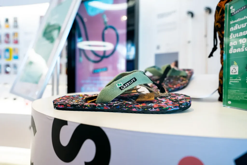 ในปีนี้ CASETiFY ประเทศไทย จึงบรรเจิดไอเดียเก๋ นำเคสมือถือเก่าเหล่านี้ไปแปรรูป (Upcycle) เป็น รองเท้าแตะ “Re/CASETiFY Sandals” จำนวน 500 คู่ ร่วมกับ โครงการรองเท้าทะเลจร (Tlejourn Shoes) ซึ่งเป็นโครงการแบบไม่หวังผลกำไรที่เปลี่ยนขยะจากทะเลเป็นพื้นรองเท้า บนความร่วมมือระหว่างอาสาสมัครกลุ่ม Trash Hero นักวิทยาศาสตร์ด้านพอลิเมอร์ จากมหาวิทยาลัยสงขลานครินทร์ วิทยาเขตปัตตานี แบรนด์แฟชั่นดีไซน์ และชุมชนชาวปัตตานี