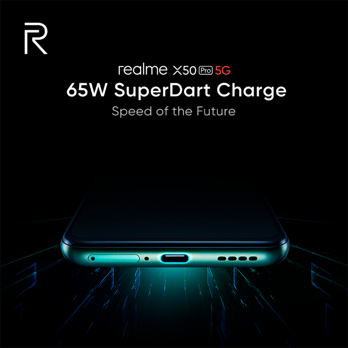 นอกจากนี้ realme X50 Pro 5G ยังมาพร้อมเทคโนโลยีชาร์จเร็ว 65W SuperDart Charge เป็นรุ่นแรกของ realme ซึ่งทาง realme ได้จดเครื่องหมายการค้า SuperDart นี้มาเมื่อช่วงปลายปี 2019 ที่ผ่านมา