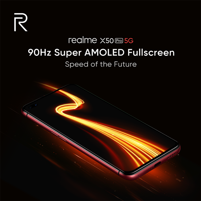บัญชี Twitter อย่างเป็นทางการของ realme Europe ได้ทวีตภาพทีเซอร์เผยสเปกล่าสุดของ realme X50 Pro 5G โดยยืนยันมาพร้อมจอแสดงผลแบบ Super AMOLED ที่มีอัตรารีเฟรชเรทที่ 90Hz เพื่อการเรียกดูที่ราบลื่นและเพลิดเพลินกับรายละเอียดบนหน้าจอ