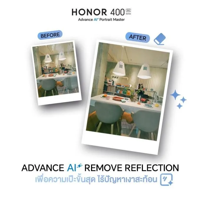 เมื่อกล้องที่คมชัดอาจยังไม่เพียงพอสำหรับภาพถ่าย HONOR 400 Series จึงมอบฟีเจอร์ Advance AI ที่ช่วยทำหน้าที่เหมือนผู้ช่วยหลังกล้อง ด้วยฟีเจอร์ Advance AI Cutout & Advance AI Cutout 2.0 ช่วยให้ผู้ใช้สามารถเลือกและย้ายวัตถุในภาพได้อย่างอิสระ โดยระบบจะเติมพื้นที่ที่ถูกย้ายออกให้อัตโนมัติ เพื่อให้ดูสมจริงราวกับว่าวัตถุนั้นไม่เคยอยู่ตรงนั้นมาก่อน เหมาะสำหรับการจัดวางองค์ประกอบภาพใหม่หรือปรับปรุงภาพให้ลงตัวมากขึ้น, Advance AI Eraser และ Advance AI Erase Passers-by ที่ช่วยลบวัตถุหรือคนที่ไม่ต้องการออกจากภาพได้อย่างแนบเนียนและรวดเร็ว, Advance AI Remove Reflection ที่ลบแสงสะท้อนจากกระจกหรือแฟลชได้อย่างมีประสิทธิภาพ เหมาะสำหรับสายคาเฟ่ที่มักถ่ายรูปผ่านกระจกสวยๆ ในร้าน, Advance AI Outpainting สำหรับขยายภาพถ่ายให้ภาพดูสมบูรณ์แบบยิ่งขึ้น, รวมถึง Advance AI Upscale ที่ฟื้นฟูภาพเก่าให้กลับมาคมชัดราวภาพใหม่ในคลิกเดียว