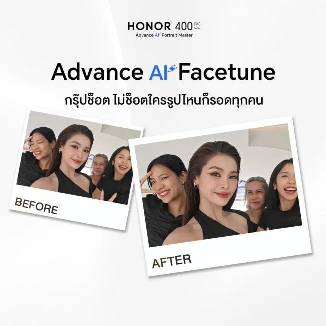 เพราะภาพถ่ายที่ดีไม่ใช่แค่เรื่องของความคมชัด แต่คือการถ่ายทอดความรู้สึกในวินาทีนั้นออกมาให้ชัดเจนที่สุด HONOR 400 Series จึงมาพร้อม กล้อง 200MP Ultra-clear Advance AI และ Advance AI Super Zoom ที่ไม่เพียงให้ความละเอียดสูงระดับมืออาชีพ แต่ยัง “เข้าใจ” วิธีการถ่ายภาพของคุณอย่างลึกซึ้ง ด้วยพลังของ Advance AI กล้องจะเรียนรู้จากพฤติกรรมการใช้งานของคุณโดยอัตโนมัติ ไม่ว่าคุณจะชอบภาพสว่างคมชัด หรือเน้นโทนอบอุ่นโรแมนติก AI จะจดจำและปรับตั้งค่าที่เหมาะสมที่สุดให้กับทุกสถานการณ์ ไม่ว่าจะเป็นภาพพอร์ตเทรตในแสงน้อยที่ต้องการความนุ่มนวลแต่ยังคงรายละเอียดครบ หรือการเก็บภาพธรรมชาติที่เปลี่ยนแสงไปตามเวลาในแต่ละวินาที กล้องจะปรับ white balance, exposure, focus และโหมดที่เหมาะสมให้ทันทีแบบไม่ต้องสั่ง คุณจึงไม่ต้องเสียเวลาเลือกฟิลเตอร์หรือปรับแสงอีกต่อไป เพียงยกกล้องขึ้น และกดชัตเตอร์ ทุกภาพที่ได้จะเป็นภาพที่ “ตรงใจ” ตั้งแต่ครั้งแรก และนี่คือกล้องที่ไม่ได้แค่ถ่ายภาพ แต่พร้อมจะเข้าใจ เรียนรู้ และเล่าเรื่องแทนคุณในทุกช็อตนอกจากนี้ยังมีโหมด Advance AI Enhanced Portrait ที่ให้คุณสร้างสรรค์ภาพพอร์ตเทรตสมจริงด้วยความละเอียดเต็มพิกัดของกล้อง 200MP และระบบ All Focal Length Portrait ที่รองรับการถ่ายได้ถึงระยะ 135mm ให้คุณจัดองค์ประกอบภาพได้อย่างหลากหลายไม่จำกัดสไตล์ ไม่ว่าจะเป็นโคลสอัพสุดละเมียดละไมหรือภาพครึ่งตัวสวยมีมิติ