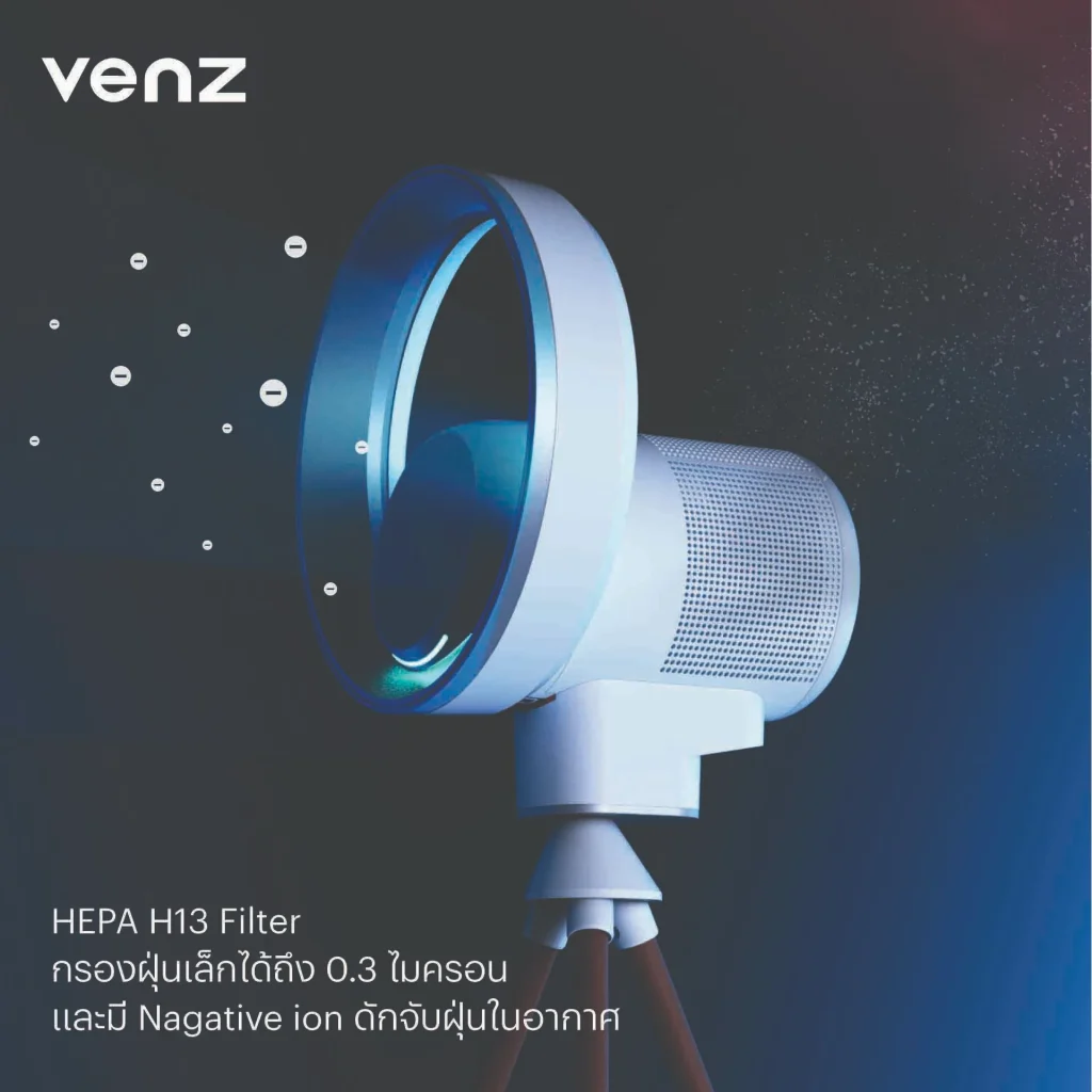 สำหรับ Venz ORBIT มาพร้อมเทคโนโลยีการฟอกอากาศล้ำสมัยที่ออกแบบมาเพื่อตอบโจทย์ไลฟ์สไตล์ของคนยุคใหม่ โดยใช้ HEPA H13 Filter ที่สามารถกรองฝุ่นละอองขนาดเล็ก 0.3 ไมครอน รวมถึงฝุ่น PM2.5 ซึ่งช่วยให้อากาศสะอาดและปลอดภัยจากสารปนเปื้อนที่มองไม่เห็น