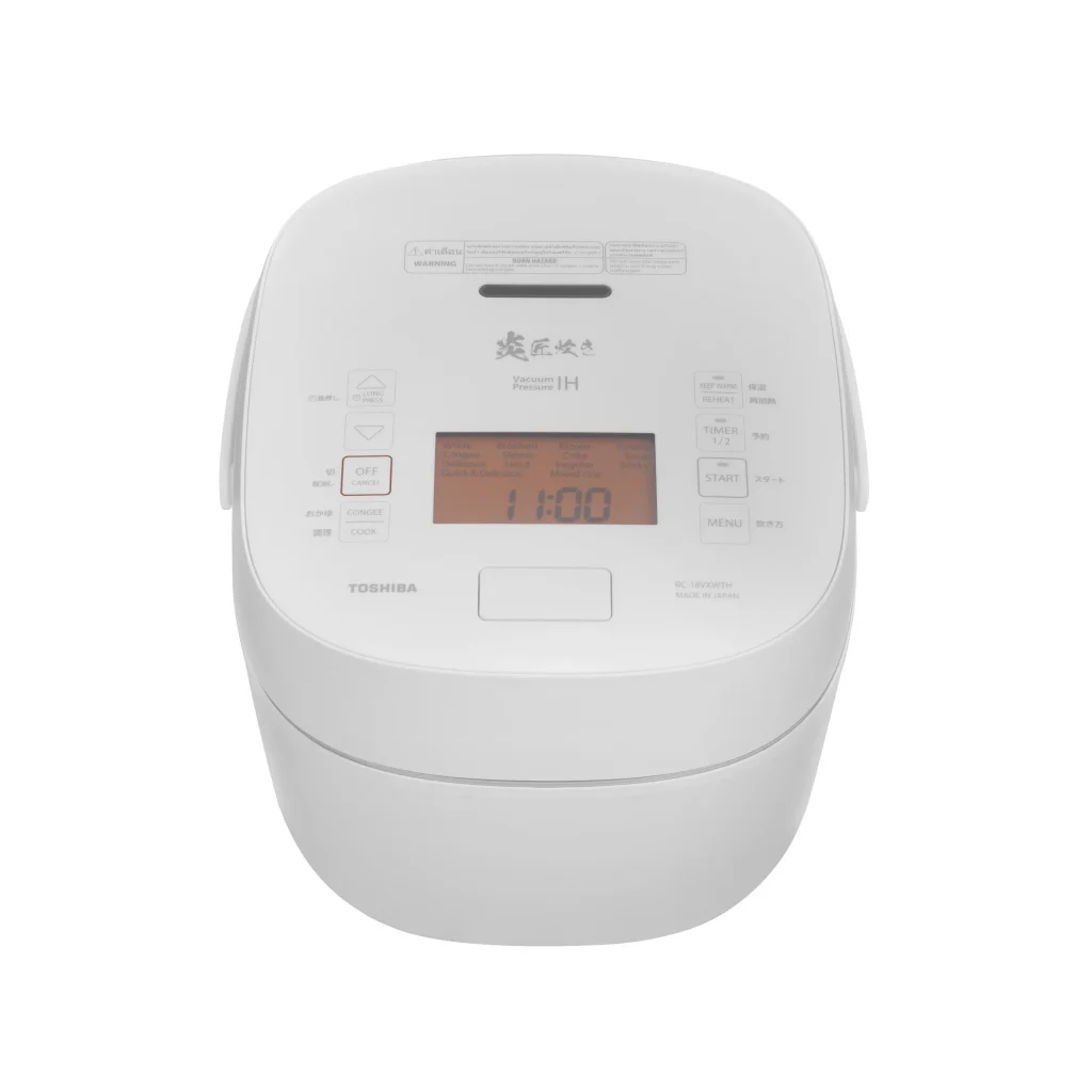 รุ่น RC-18VXWTH ถือเป็นหม้อหุงข้าวเรือธงที่มาพร้อมเทคโนโลยี Induction Heating (IH) และระบบสุญญากาศอันเป็นเอกสิทธิ์เฉพาะของโตชิบา โดยเทคโนโลยีสุญญากาศช่วยดูดอากาศจากเมล็ดข้าวออกก่อนการหุง ทำให้ข้าวสามารถดูดซึมน้ำได้รวดเร็วและทั่วถึง จึงลดเวลาในการแช่ข้าว