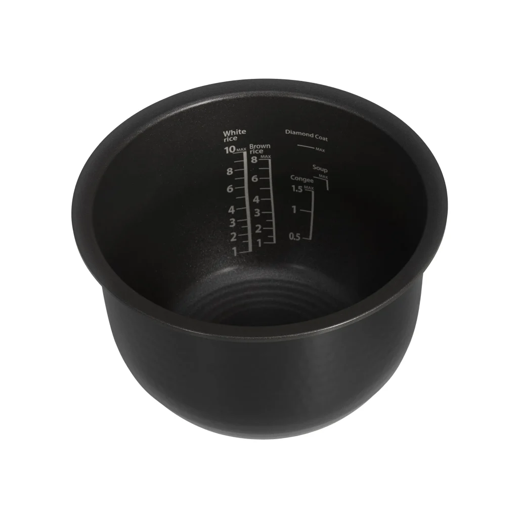 ภายนอกเคลือบผิวอินฟราเรดเพื่อสะท้อนและกระจายความร้อน ผนวกกำลังกับวัสดุภายในที่เคลือบไทเท เนียมเพชรที่ช่วยในการนำและกระจายความร้อนอย่างสม่ำเสมอ จึงมั่นใจในรสชาติของทุกอณูเมล็ดข้าว