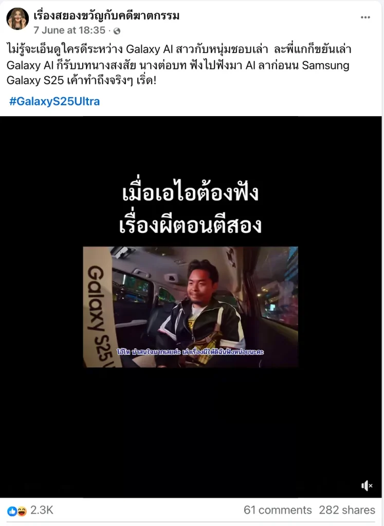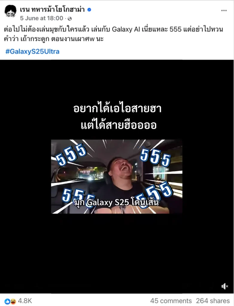 เมื่อ AI ไม่ได้มาแค่ช่วยงาน แต่มาช่วยตบมุก! ล่าสุดบนโซเชียลมีคลิปไวรัลที่ทำเอาคนไทยฮากระจาย เมื่อหนุ่มสายขำหยิบ Galaxy S25 Ultra ขึ้นมาคุยกับ Galaxy AI ระหว่างนั่ง Grab แล้วเล่นมุกกันแบบโต้ตอบกันสด ๆ ไม่มีใครยอมใคร โชว์สกิล “AI เล่นมุก” ที่ไม่ตายไมค์!