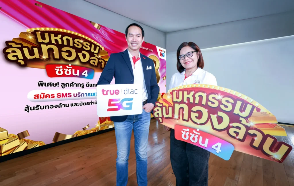 ลูกค้าทรู ดีแทคสามารถร่วมสนุกกับกิจกรรมที่ชื่นชอบได้ง่ายๆ เพียงสมัครบริการเสริมทาง SMS เพื่อรับสิทธิ์ลุ้นรับรางวัลใหญ่ทองคำมูลค่า 100,000 บาทจำนวน 30 รางวัล และรางวัลอื่นๆ อีกมากมาย ตั้งแต่วันนี้ ถึง 31 กรกฎาคม 2569 เท่านั้น