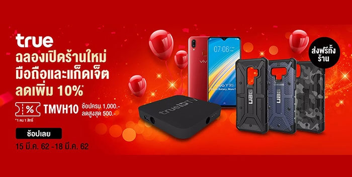 พิเศษ เฉพาะช่วงฉลองเปิดร้าน ลด 10% เมื่อซื้อสินค้าครบ 1,000 บาท (รับส่วนลดสูงสุด 500 บาท) วันที่ 15-18 มีนาคมนี้ ช้อปได้ที่ https://www.lazada.co.th/shop/truemove-h/