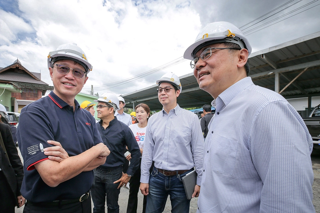 ในโอกาสเยี่ยมชมเสาสัญญาณและการทำงานเพื่อเพิ่มประสิทธิภาพโครงข่ายภายหลังการควบรวมของทรูและดีแทค ในเขตประเวศ กรุงเทพมหานคร