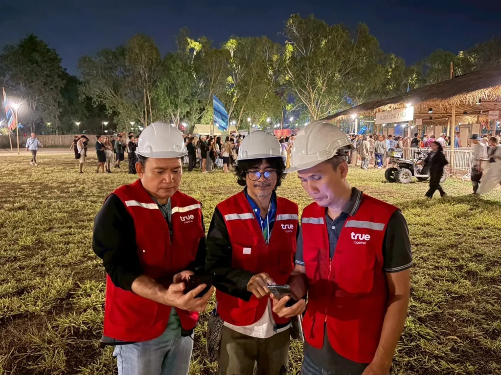 ทีมเน็ตเวิร์กของ ทรู คอร์ปอเรชั่น ได้ติดตั้งสถานีฐานเฉพาะกิจ (Temporary Sites) เพื่อเพิ่มสัญญาณ 5G และ 4G ให้ครอบคลุมพื้นที่จัดงาน รองรับความหนาแน่นของผู้ใช้งานแบบเรียลไทม์ในทุกโซนกิจกรรม ตั้งแต่เวทีการแสดงที่มีมากถึง 40 เวที โรงละครธรรมชาติ ไปจนถึงพื้นที่ฟลอร์เต้นรำลับในป่าเพื่อให้มั่นใจว่าทุกการเชื่อมต่อจะมีประสิทธิภาพสูงท่ามกลางบรรยากาศเทศกาล