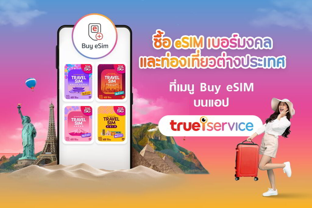 สะดวกยิ่งขึ้นลูกค้าทรูสามารถซื้อeSIM Travel Sim และอีกหลากหลายแพ็คเกจได้เองแล้ววันนี้ง่ายๆ ผ่านแอปพลิเคชัน ทรูไอเซอร์วิส หรือ คลิ๊ก