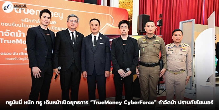ทรูมันนี่ ผู้นำด้านบริการอิเล็กทรอนิกส์เพย์เมนต์และผู้ให้บริการทางการเงินชั้นนำในภูมิภาคเอเชียตะวันออกเฉียงใต้ ผนึกกำลัง ทรู คอร์ปอเรชั่น ประกาศเปิดตัวและเดินหน้ายุทธการ “TrueMoney CyberForce” กำจัดม้า ปราบภัยไซเบอร์ เพื่อตอบรับนโยบายภาครัฐ ร่วมแก้ปัญหาสังคมในงาน “รวมพลังคนไทย ต้านภัยสแกมเมอร์” ที่สำนักงานตำรวจแห่งชาติ