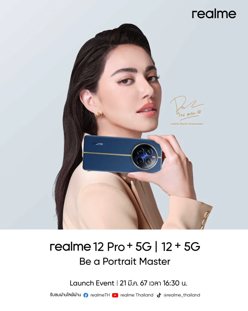 รอพบกับงานเปิดตัว realme 12 Pro+ 5G และ realme 12+ 5G พร้อมกัน 21 มีนาคม ผ่านช่องทาง Facebook, Youtube และ Tiktok ตั้งแต่เวลา 16.30 น. เป็นต้นไป