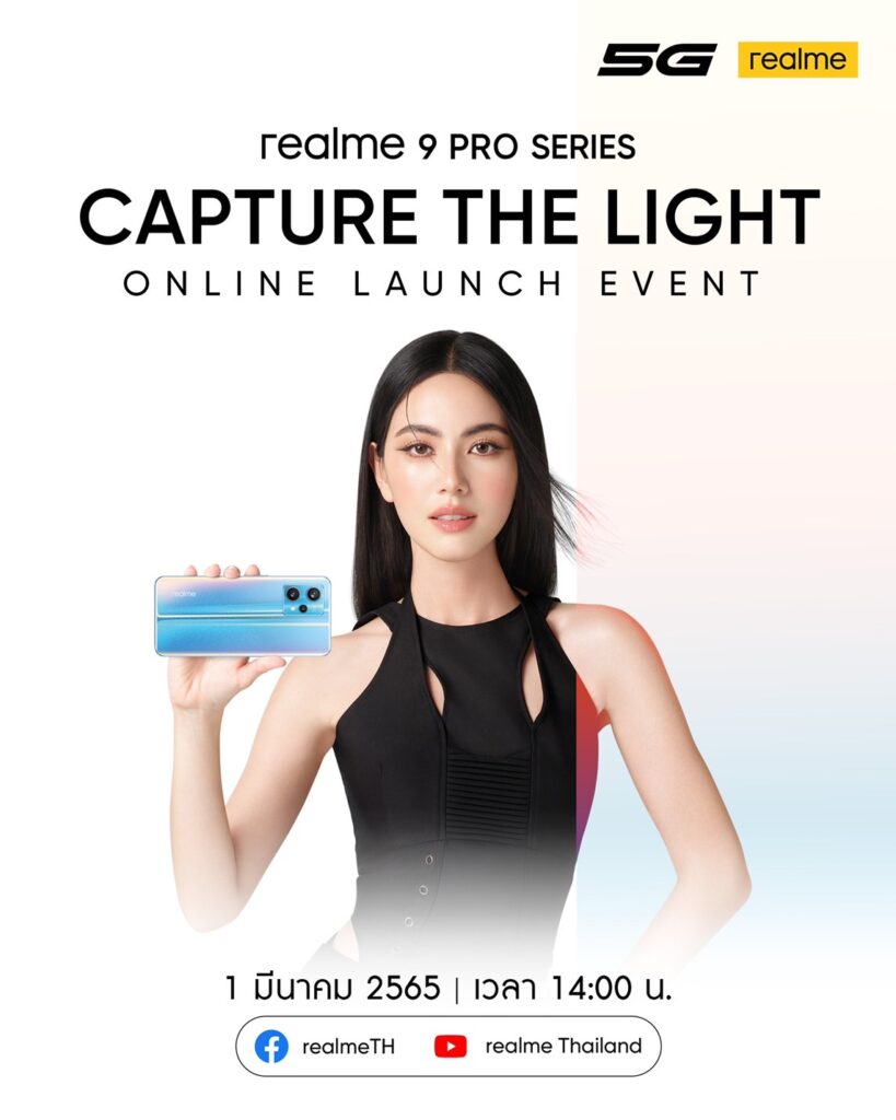 เตรียมพบกับ realme 9 Pro Series ซึ่งเป็น Hero product รุ่นล่าสุดของผลิตภัณฑ์ realme ที่จะส่งมอบประสบการณ์สุดล้ำให้กับแฟนๆ ชาวไทย และพร้อมเขย่าวงการสมาร์ตโฟนในไทย ในงานเปิดตัวรูปแบบออนไลน์ วันที่ 1 มีนาคม 2565 ตั้งแต่เวลา 14.00 น.เป็นต้นไป บนแพลตฟอร์มโซเชียลมีเดียอย่างเป็นทางการของทาง realme ได้แก่ YouTube และ Facebook และรีวิวเต็มของ realme 9 Pro และ realme 9 Pro+ ในวันเดียวกันครับ