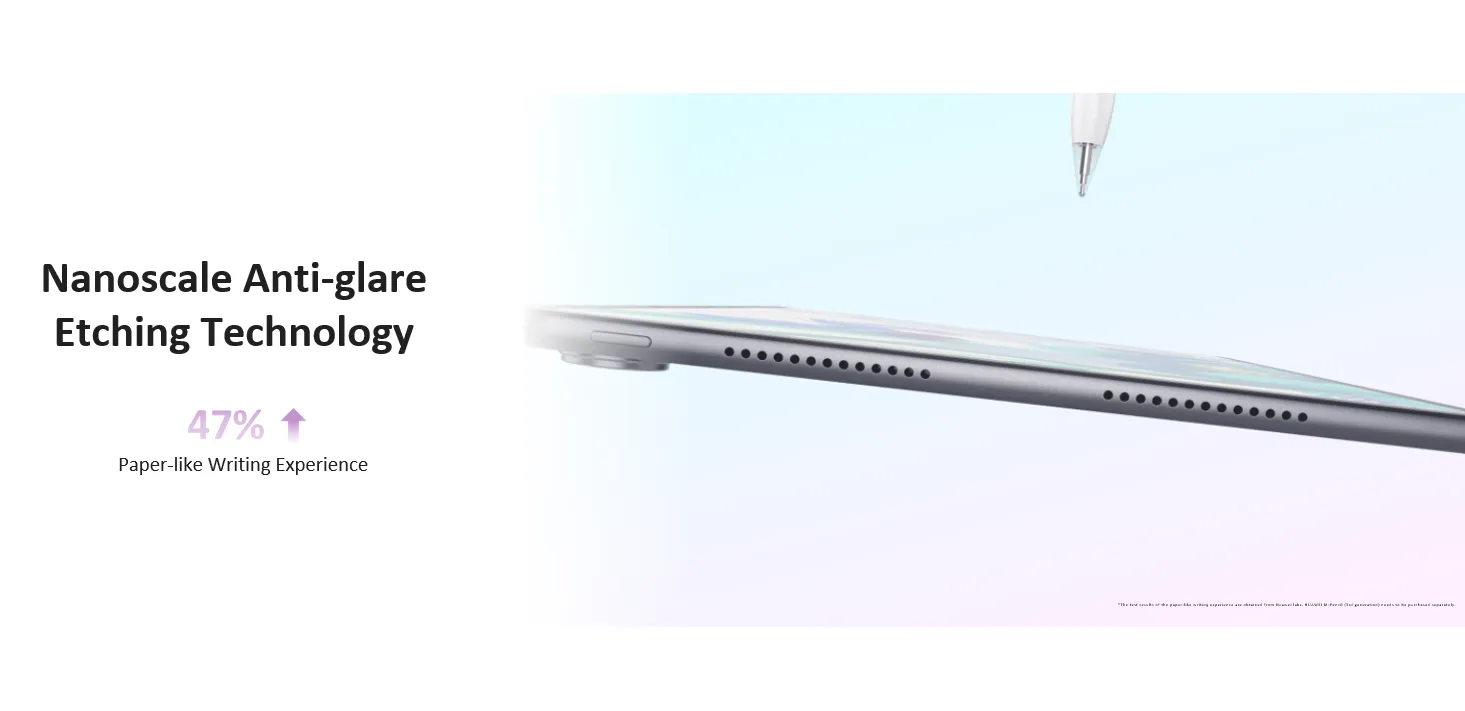เทคโนโลยีการปรับการแสดงผลของPaperMatte Display รูปแบบระดับนาโนที่อิงจากการจัดวางพิกเซลบนพื้นผิวกระจกช่วยให้สบายตาและให้ภาพที่คมชัด การรับรองที่เชื่อถือได้โดย SGS และ TUV Rheinland นอกจากนี้จากข้อมูลการทดสอบความล้าทางสายตาที่จัดทําโดยปัจจัยมนุษย์และศูนย์วิจัยปฏิสัมพันธ์อัจฉริยะของสถาบันมาตรฐานแห่งชาติจีน ดัชนีความล้าทางสมองของแท็บเล็ตที่ติดตั้งจอแสดงผล PaperMatte Display ต่ำากว่าแท็บเล็ตทั่วไป 20%[4] และปวดตาน้อยกว่ายาเม็ดทั่วไปถึง 41%[5]