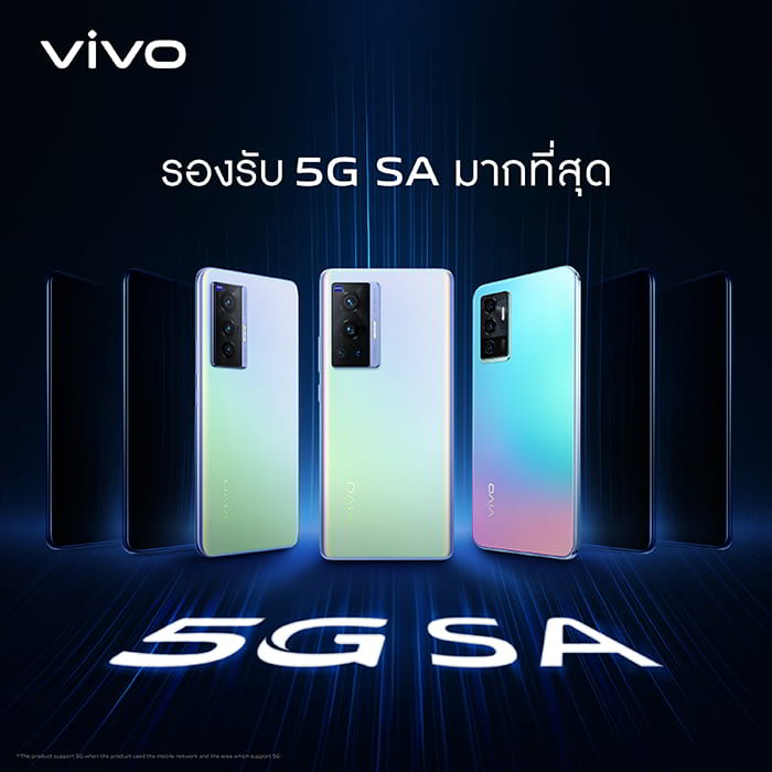 นอกจากนี้ จากการวิจัยและพัฒนาเทคโนโลยี 5G SA ร่วมกับผู้ให้บริการเครือข่ายชั้นนำของไทยอย่าง AIS และ True ทำให้สมาร์ตโฟนของ vivo ที่รองรับ 5G SA ที่วางจำหน่ายอยู่ในปัจจุบันทุกรุ่น สามารถใช้งานครอบคลุมได้ทั้งความถี่ 700 MHz และ 2,600 MHz ทั้งบนเครือข่ายของ AIS และ True และวางจำหน่ายในราคาที่ทุกคนสามารถเป็นเจ้าของและสัมผัสกับนวัตกรรมแห่งอนาคตอย่าง 5G SA ได้อย่างง่ายดาย ในราคาเริ่มต้นเพียง 7,999 บาท