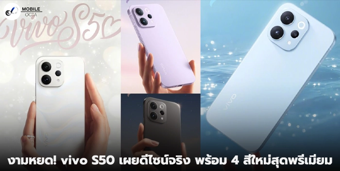 จากภาพโปรโมทเผยให้เห็น vivo S50 ใน 4 เฉดสี ได้แก่: