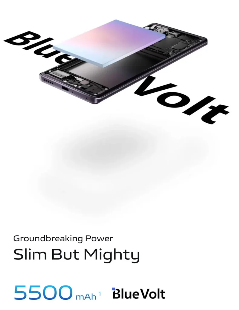 และใช้แบตเตอรี่ความจุ 5,50mAh ซึ่งใช้เทคโนโลยี Blue Volt ของ vivo ออกแบบให้แบตเตอรี่สามารถใช้งานได้ทนทาน และใช้พลังงานได้คุ้มค่า พร้อมรองรับการชาร์จเร็ว 80W แต่มีรายงานว่าไม่แถมอะแดปเตอร์ชาร์จเร็วมาให้ต้องแยกซื้อต่างหาก