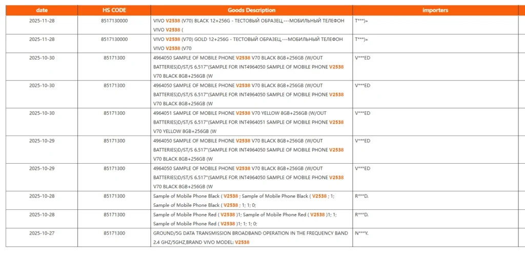 ก่อนหน้านี้มีข้อมูลเผยว่าสมาร์ตโฟนโมเดล V2538 จะใช้ชื่อในการทำตลาดว่า vivo V70 ซึ่งได้ผ่านการรับรองในยุโรป, อินเดีย และ UAE ไปแล้ว