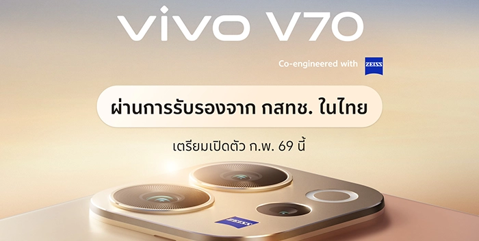 vivo แบรนด์สมาร์ตโฟนชั้นนำระดับโลก ยืนยันเตรียมส่งสมาร์ตโฟนรุ่นใหม่จากตระกูล V Series ที่ทุกคนรอคอยอย่าง vivo V70 บุกตลาดไทยอย่างเป็นทางการภายในเดือนกุมภาพันธ์นี้อย่างแน่นอน โดยล่าสุดผ่านการรับรองจาก กสทช. เรียบร้อยแล้ว