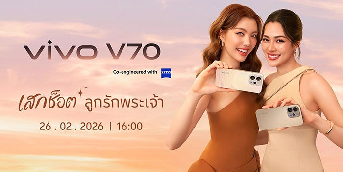 ปักหมุดรอไว้ได้เลย! vivo V70 เตรียมนับถอยหลังสู่การเปิดตัวอย่างเป็นทางการ พร้อมเปิดรับสมัครเหล่า “ลูกรักพระเจ้า” และแฟน ๆ มาร่วมรับชมความสนุกในงานเปิดตัว พบกับ ‘หลิง-ออม’ ในฐานะ vivo friends และแขกรับเชิญพิเศษสุดเซอร์ไพรซ์ พร้อมกันวันที่ 26 กุมภาพันธ์นี้ เวลา 16.00 น. เป็นต้นไป ผ่านไลฟ์สตรีมมิงบนช่องทางโซเซียลมีเดียของ vivo ประเทศไทย ดังนี้