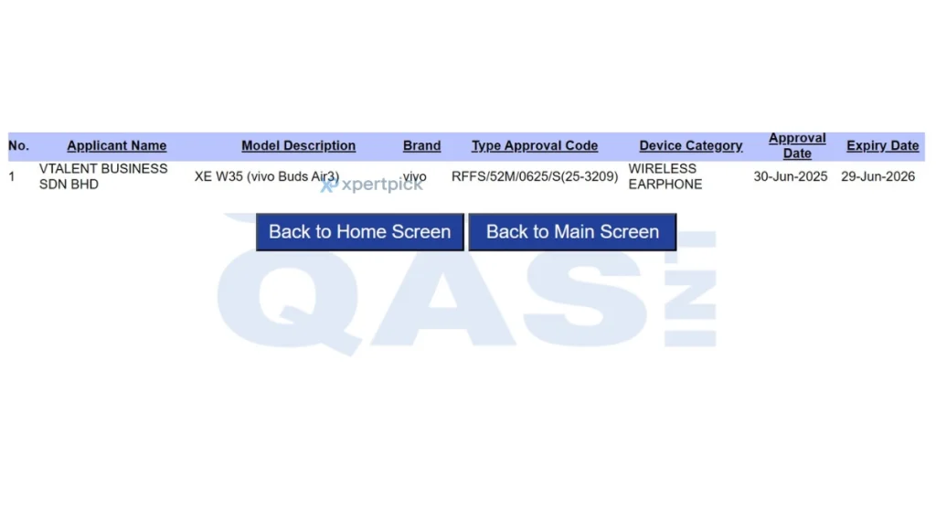 นอกจากนี้เมื่อสัปดาห์ก่อน vivo เผยว่ากำลังพัฒนา vivo Buds Air 3 หูฟังไร้สาย TWS รุ่นใหม่ โดยมีข้อมูลปรากฎในแพลตฟอร์มการรับรองต่าง ๆ เช่น TUV Rheinland, Bluetooth SIG, SDPPI (อินโดนีเซีย) และ TDRA (สหรัฐอาหรับเอมิเรตส์) และตอนนี้ได้รับการอนุมัติจากแพลตฟอร์มการรับรอง SIRIM ในมาเลเซียแล้ว