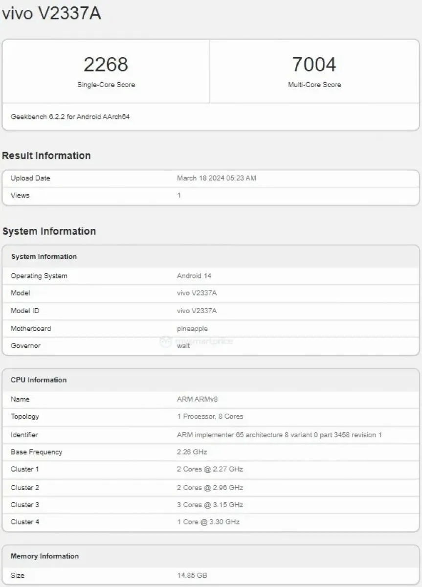 เริ่มกันที่ vivo X Fold3 Pro สมาร์ตโฟนจอพับได้รุ่นท็อปที่คาดว่าจะเป็นสมาร์ตโฟนจอพับได้รุ่นแรกที่ขับเคลื่อนด้วยชิปเซ็ท Snapdragon 8 Gen 3 ซึ่งได้รับการยืนยันโดยผล Geekbench สำหรับ “vivo V2337A” มาพร้อม RAM ขนาด 16GB และรันบนระบบปฎิบัติการ Android 14 ครอบทับด้วย OriginOS 4