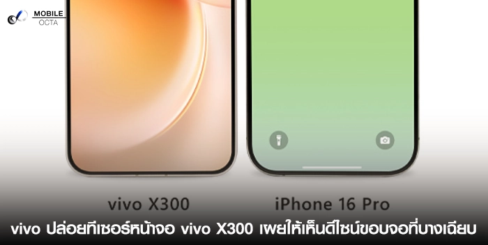vivo ได้ปล่อยภาพทีเซอร์เปรียบเทียบดีไซน์หน้าจอของ vivo X300 กับ iPhone 16 Pro อย่างชัดเจน ซึ่งคาดว่า X300 จะมาพร้อมหน้าจอ OLED ขนาด 6.3 นิ้วใกล้เคียงกัน แต่สิ่งที่โดดเด่นกว่าคือการใช้เทคโนโลยี LIPO (Low-Injection Pressure Overmolding) ทำให้ Vivo X300 มีขอบจอที่บางเฉียบเป็นพิเศษทั้ง 4 ด้าน