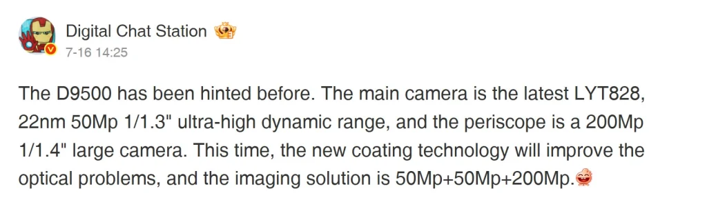 Digital Chat Station แหล่งข่าวหลุดสมาร์ตโฟนได้โพสต์ผ่านบัญชี Weibo ส่วนตัวเผยช้อมูลสเปกกล้องของ vivo X300 Pro โดยจะมาพร้อมกล้องหลักความละเอียด 50 ล้านพิกเซล ซึ่งใช้เซ็นเซอร์ Lytia LYT-828 ขนาด 1/1.3 นิ้ว ของ Sony