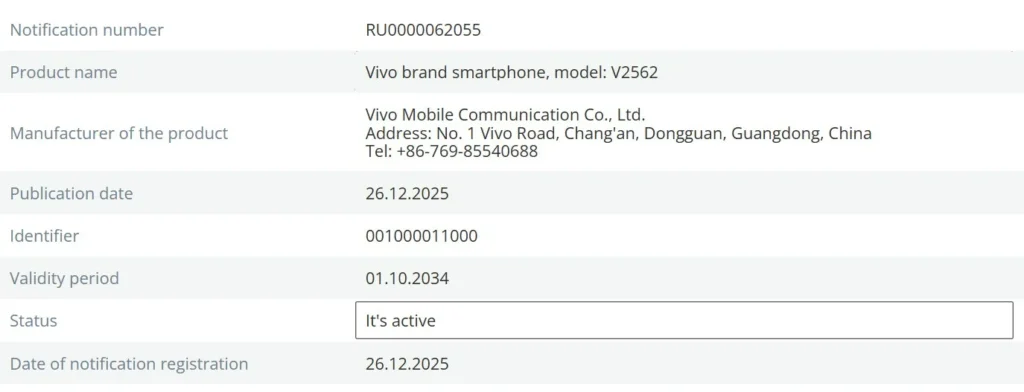 ก่อนหน้านี้มีคนตาดีไปพบข้อมูล IMEI ของเครื่องรุ่นนี้ ล่าสุดหลักฐานชัดเจนขึ้นเมื่อ Vivo X300 Ultra (Model V2562) ได้ผ่านการรับรองจากหน่วยงาน EEC (Eurasian Economic Commission) ของยุโรปเป็นที่เรียบร้อย ซึ่งแม้จะยังไม่ระบุวันเปิดตัว แต่การผ่าน EEC ปกติแล้วหมายถึงการเตรียมพร้อมสำหรับวางจำหน่ายในตลาด Global
